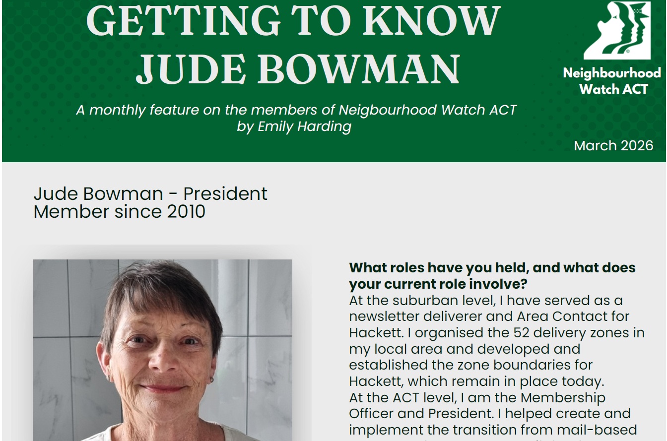 Neighbourhood Watch is a community led safety and awareness program working in partnership with police.